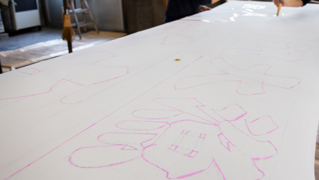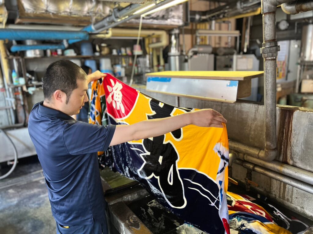 今回は、大漁旗やお祭りに使われる旗などを作成されている一部の工程の様子を見させてもらったのです☆