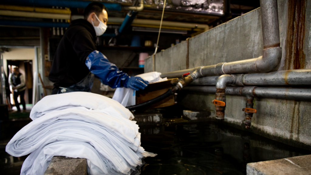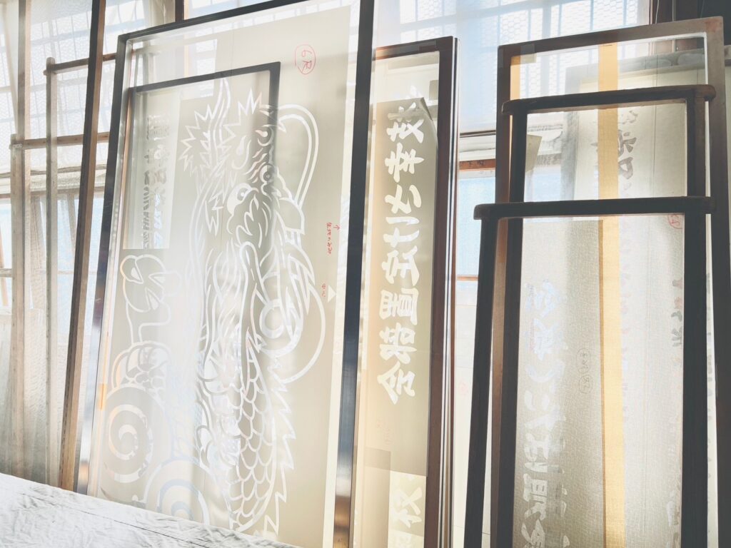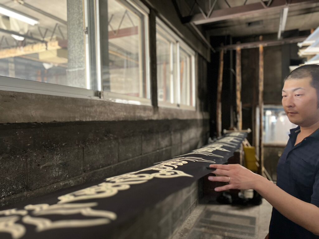 近藤染工場の本染めは、「下絵」→「のり置き」→「刷毛引き本染め」→「水洗い」→「縫製」と職人さんの全て手作業で作られていくんだって✨