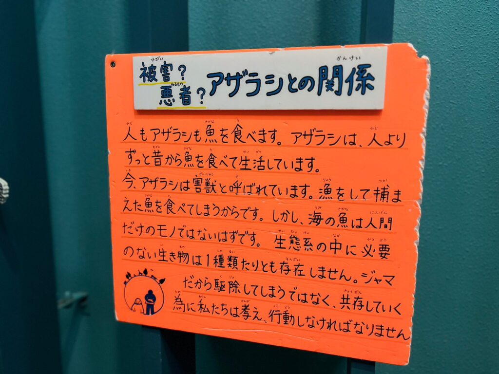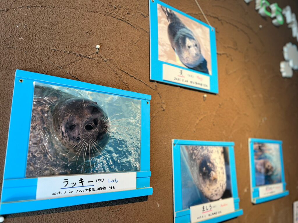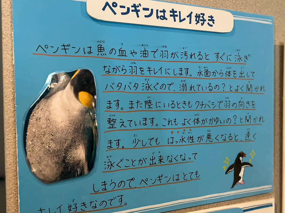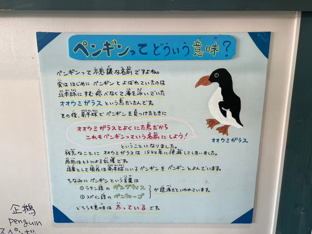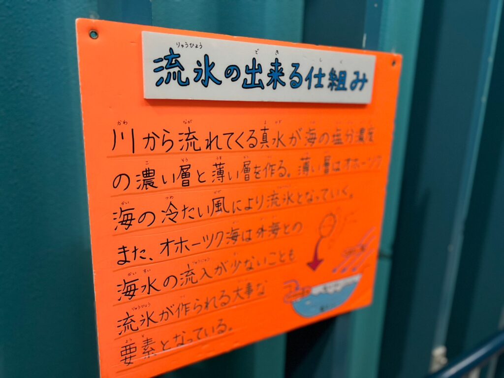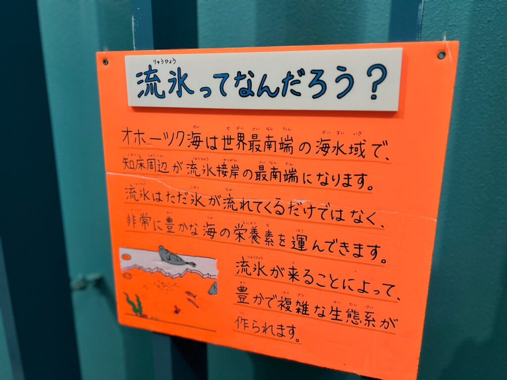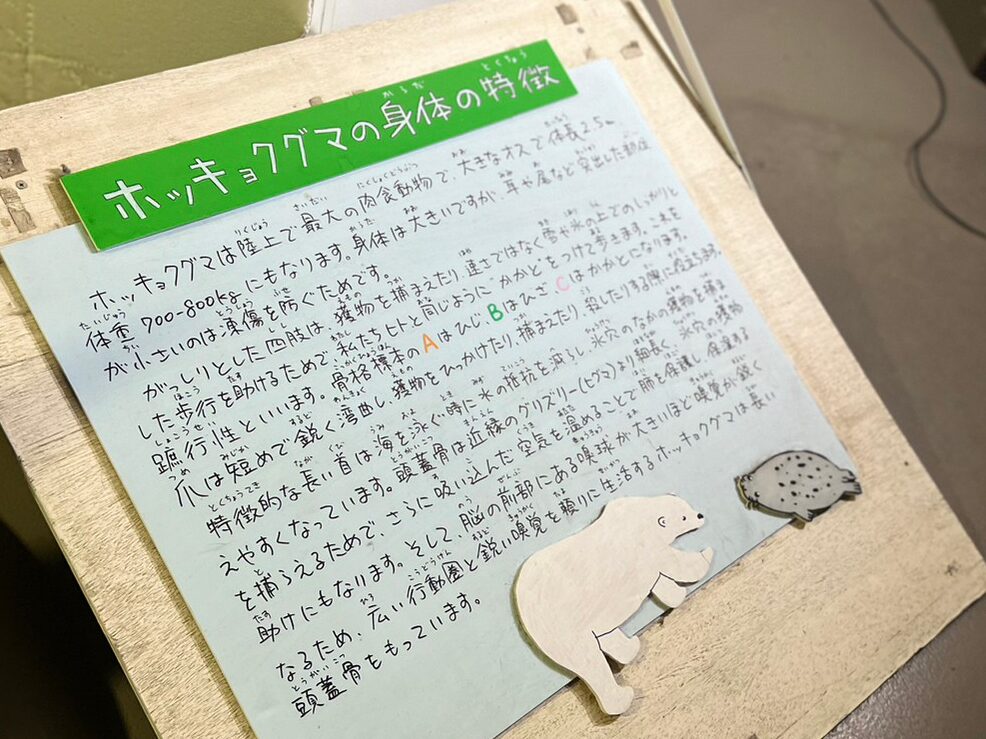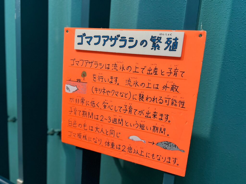 館内には沢山の手書きの説明がここにも☆ゴマファアザラシの子育て期間が2~3週間という短さにも驚きだね😲!!