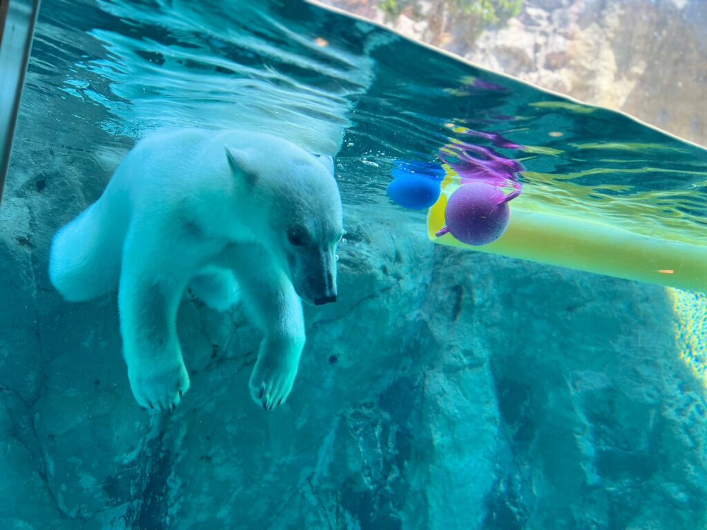 展示館から見える巨大プールではホッキョクグマがダイナミックなダイブ✨間近で見えるクマさんは大迫力なのです!!