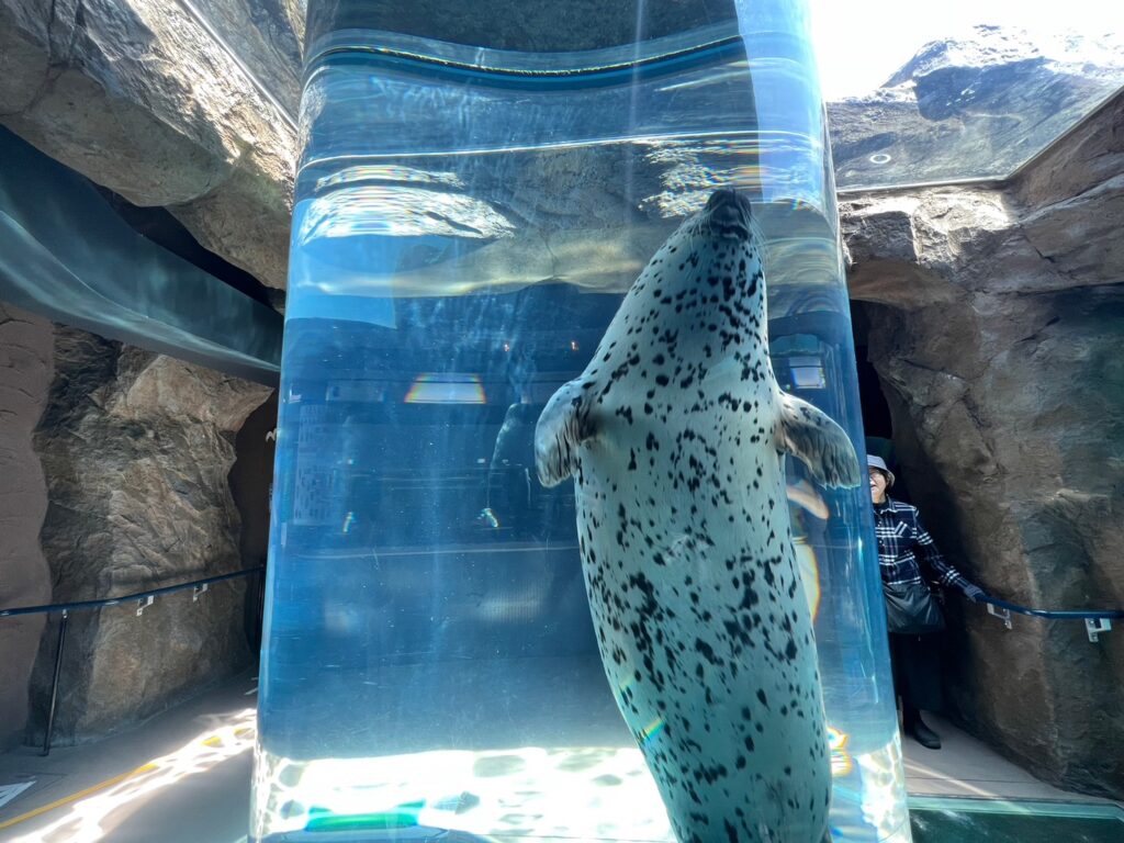 アザラシって好奇心旺盛で、動くものに興味を示し近寄ってくる特徴があるんだって。特に旭山動物園名物「もぐもぐタイム」直前には、エサをねだるように見ている人に近づいてくるんだって!面白いね♪