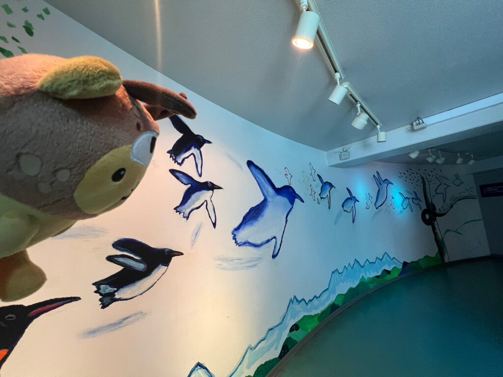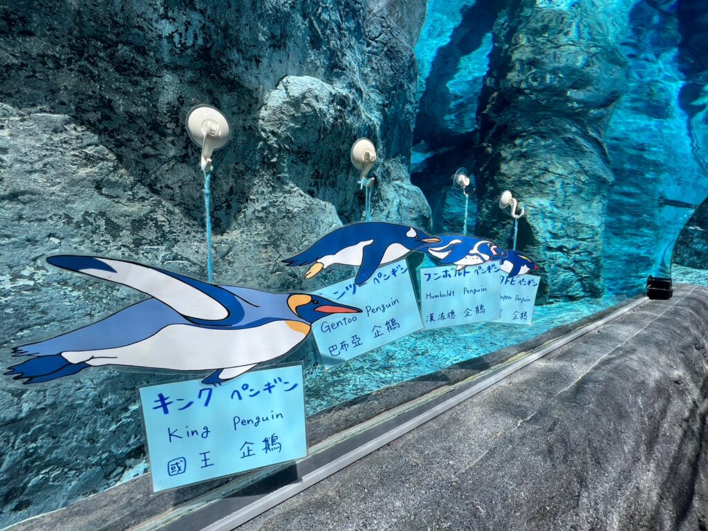 4種類のペンギンがいるんだって☆館内に入ると360度見渡せる水中トンネルがあって、ペンギンが飛んでいるように泳ぐ姿を観察することができたよ♪
