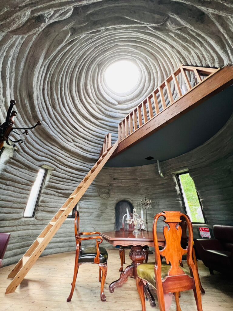 アースバッグハウスとは『土の家』という意味で、土嚢袋をみんなで積み上げて、この形を作ったんだって!すごいね✨!!