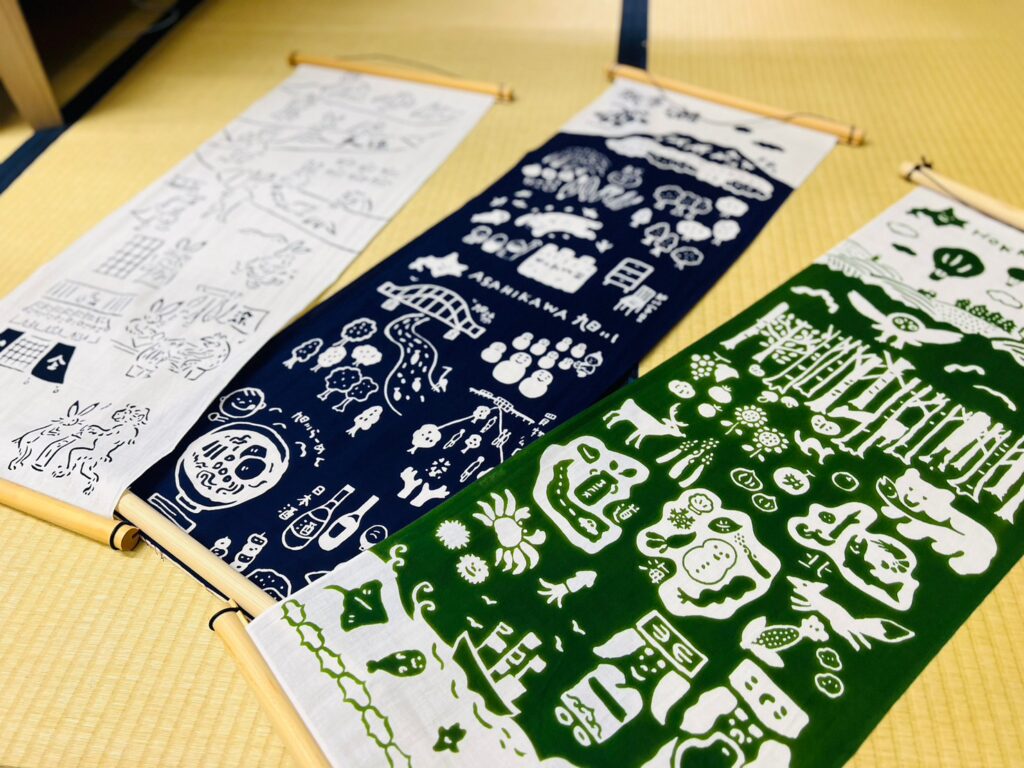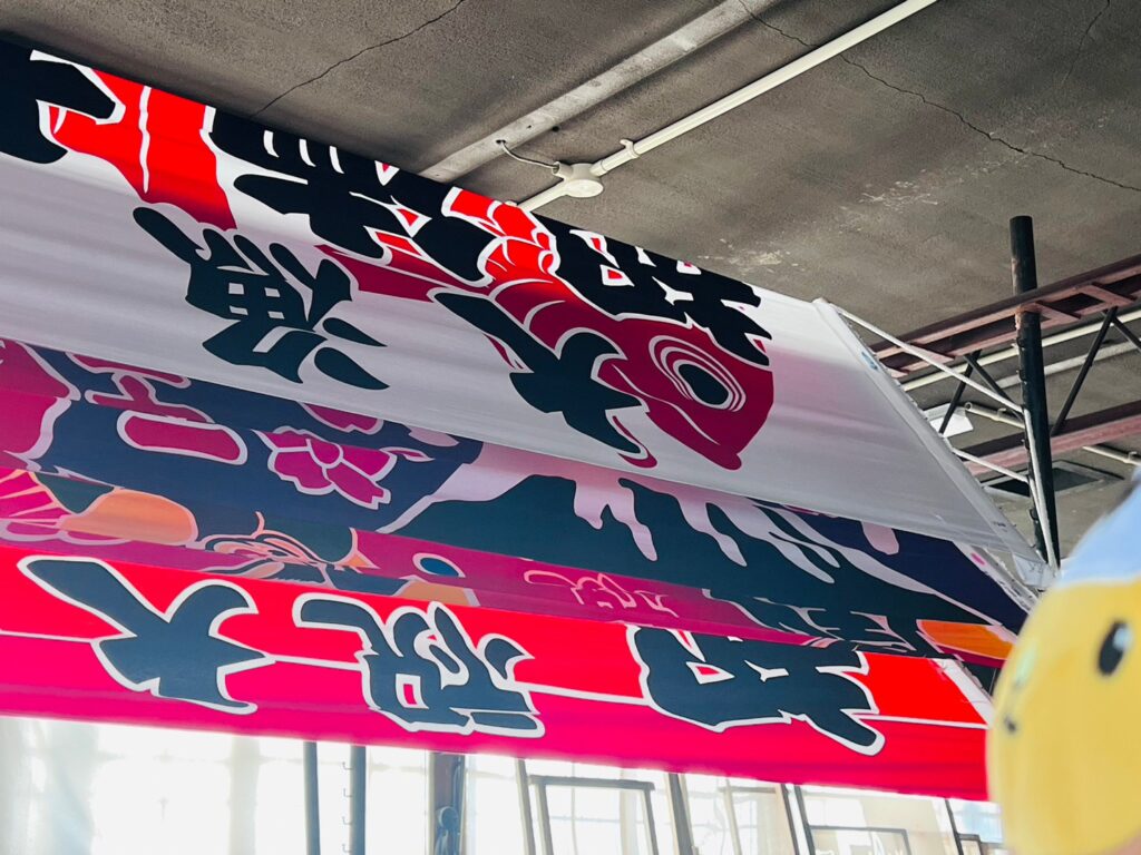 近藤染工場は、大漁旗以外にも、暖簾(のれん)、手ぬぐい、のぼり、半纏(はんてん)、風呂敷等々沢山のものを本染めで作成されているよ✨どれも素敵なものばかりだね✨