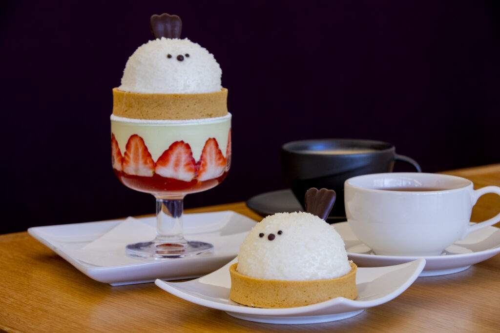 お店にはスイーツやお菓子がたっくさん!今回は”シマエナガ”をモチーフにしたケーキ・パフェをご注文♪一つ一つ違うシマエナガの表情がなんとも愛くるしい✨