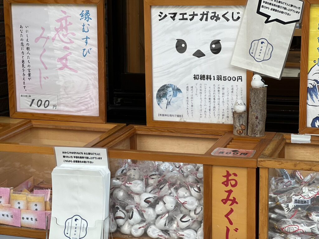 今日の目的はこれ!「シマエナガみくじ」を初め「シマエナガの御朱印」や「御朱印帖」「絵馬」などかわいいシマエナガがたっくさん♪さっそく見て見よう~!