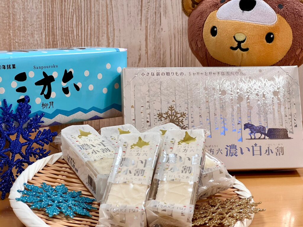 北海道を代表する銘菓「三方六」はみんな知っているよね??道内外の方に、50年以上愛されるロングセラー商品で、色んな味が揃っているバウムクーヘンなんだよ♪今回はその中でもクリスタルでお土産にオススメな”濃い白小割”という商品を頂きました☆