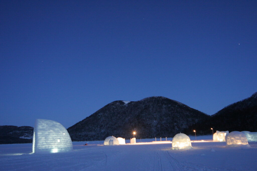 凍った然別湖の上に現れるわずか60日間の幻の村なのですっ!村の建造物は氷と雪だけでできているだよ~♪アイスバーで、氷でできたグラスでお酒を楽しんだり、大自然に囲まれた氷上露天風呂で温まる。そして夜には満天の星空が!幻想的な雪と氷の世界で非日常な空間を体験してみてね♪