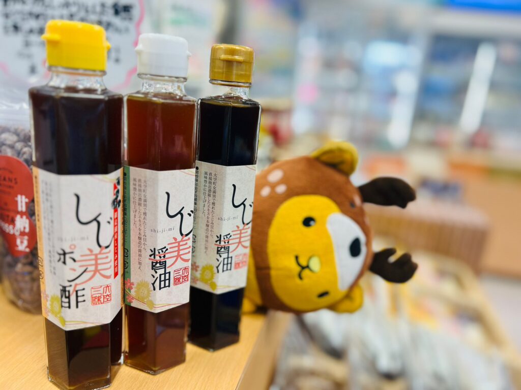 キュンちゃんも大好き!大空町と網走市にまたがる網走湖で獲れたしじみ貝から抽出して濃縮したエキスをふんだんに使用した「しじ美醤油」&「しじ美ポン酢」♪肉・魚・野菜どんな料理にでも良く合うんだって♡