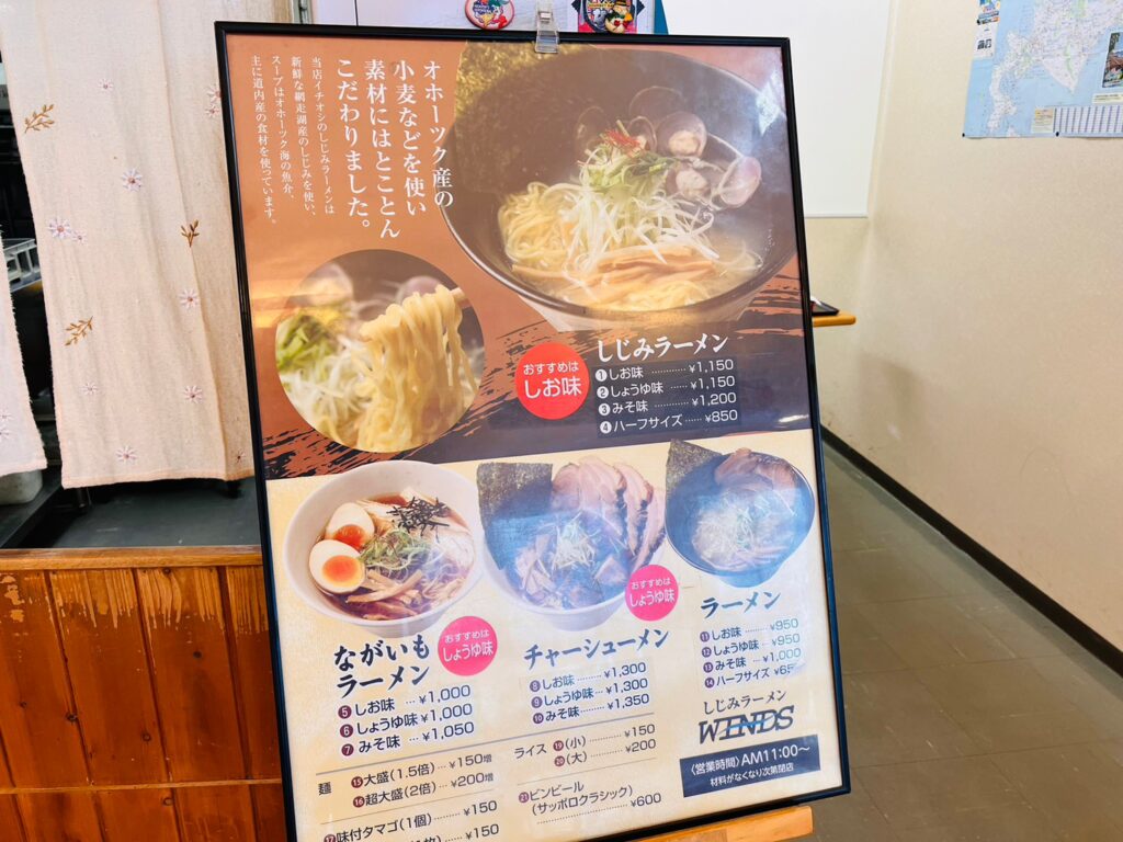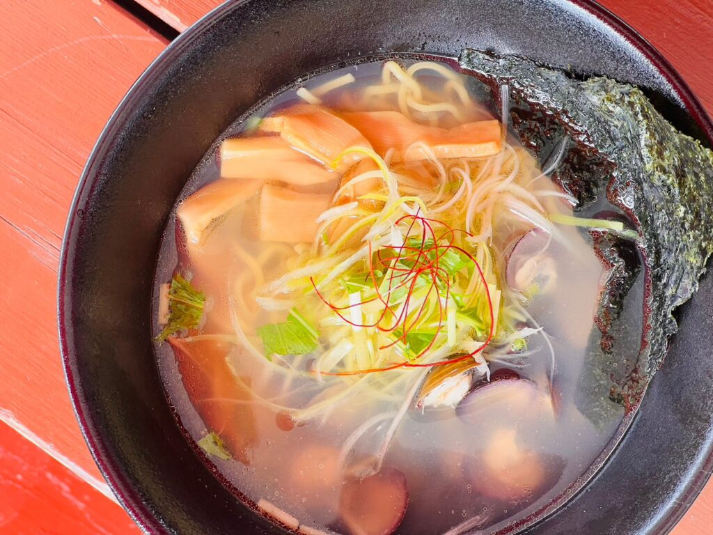 網走湖産のしじみを使った人気の「しじみラーメン(しお味)」。オホーツクの魚介を使った透き通るスープがとっても美味しい✨
