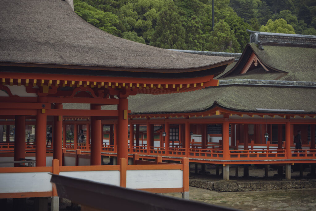 日本で唯一、潮の満ち引きのある場所に建つ海上社殿は、593年に”佐伯鞍職”が創建。その後平清盛が、嚴島神社を厚く信仰して1168年頃に現在のような寝殿造りの海上社殿を造営したというんだよ。