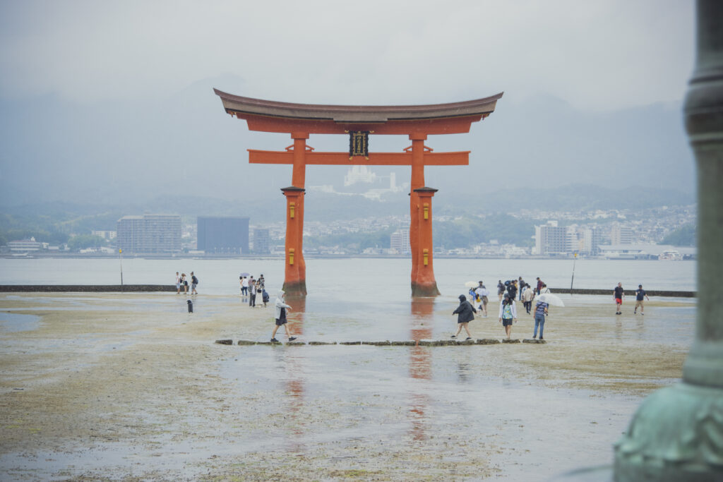 潮が引く干潮時は大鳥居に近づくことができるから、圧倒的なスケールを間近で体感することができるよ☆