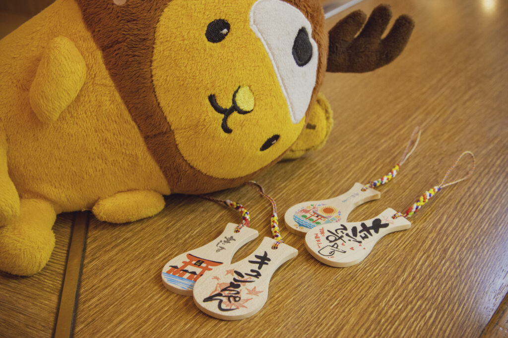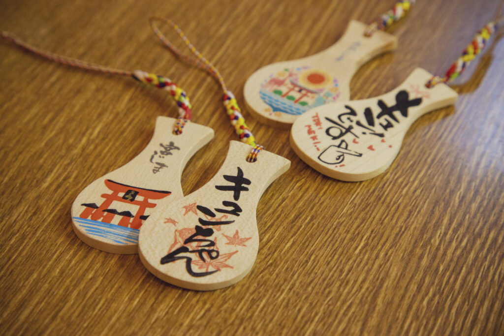 宮島で伝統工芸のしゃもじを造っている”杓子の家”で旅行の記念に”杓子ストラップ”を購入✨たっくさんの種類があったんだけど、今回はお土産で人気になっている杓子ストラップに手書きの文字を入れてもらったよ~♪