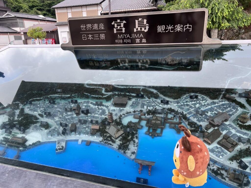 宮島は”嚴島神社”を初めとした神社仏閣がたくさんあって、お食事やお土産が集まった商店街や旅館、ロープウェイなど1日中楽しめる観光地なんだよ~♪
