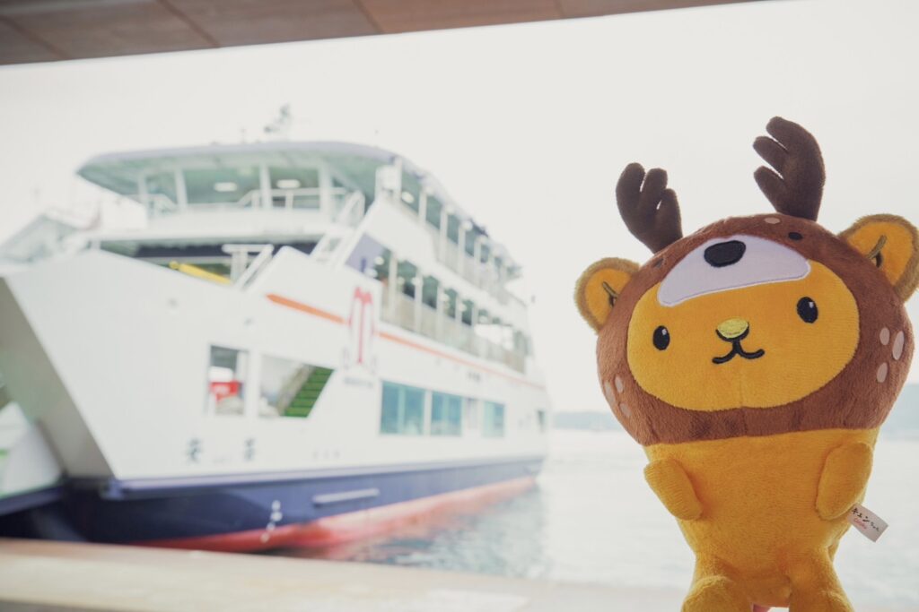 フェリーの乗車時間は約10分程なのですっ!!〈宮島口=宮島間〉の連絡船はJR宮島連絡船と宮島松大汽船の2社が運航していて、おおよそ10分ごとに乗船できる運行ダイヤだよ♪お席もたくさんあって、大型船なのでゆったり過ごせるのも嬉しいね☆