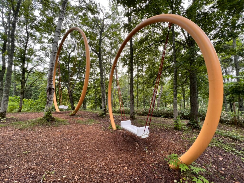 森の木琴やリング型揺れるベンチなど、小さいお子様も喜ぶような森を感じる遊び方がたっくさん☆
