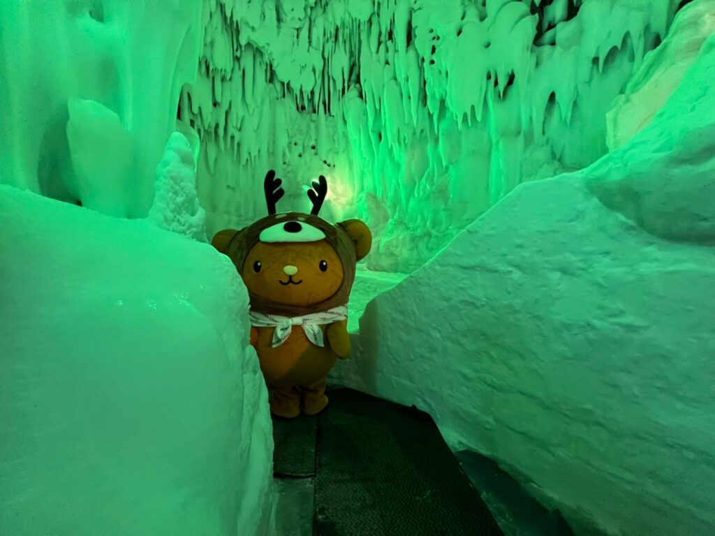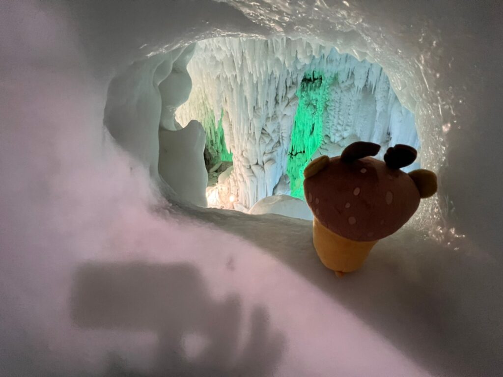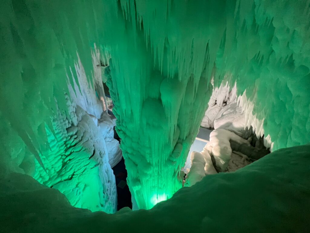 す、すごい!!幻想的な氷の世界なのですっ♪40年もの歳月をかけて少しずつ作られた分厚い氷の壁や柱。なんと氷量は1000トンにもなるんだって☆