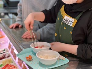 ②いろんな種類の海産物をから好きなものを好きなだけ選びます。