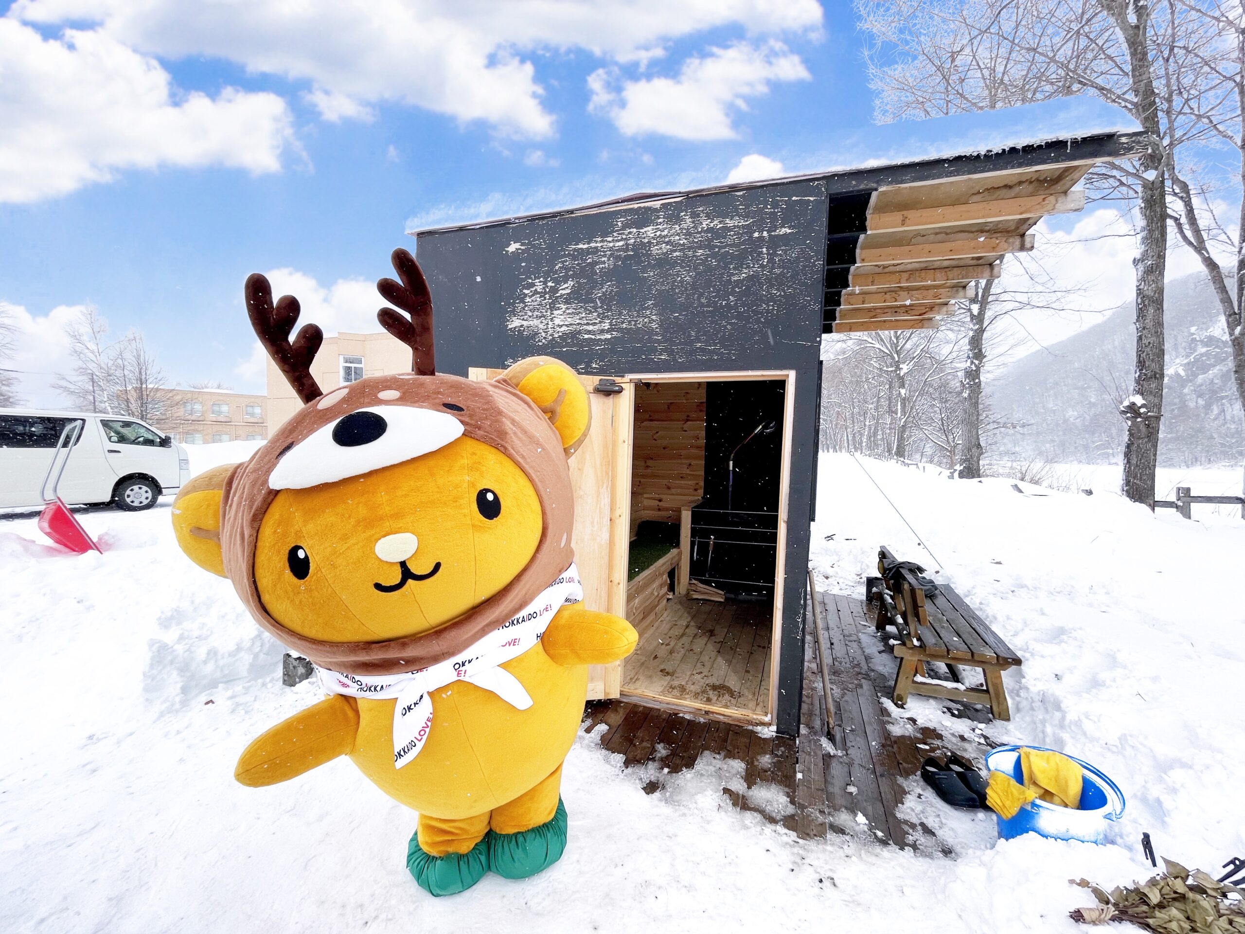 「湯宿くったり温泉レイク・イン」の駐車場のすぐ隣にサウナがあるよ~!さっそくキュンちゃんも入ってみるのですっ!