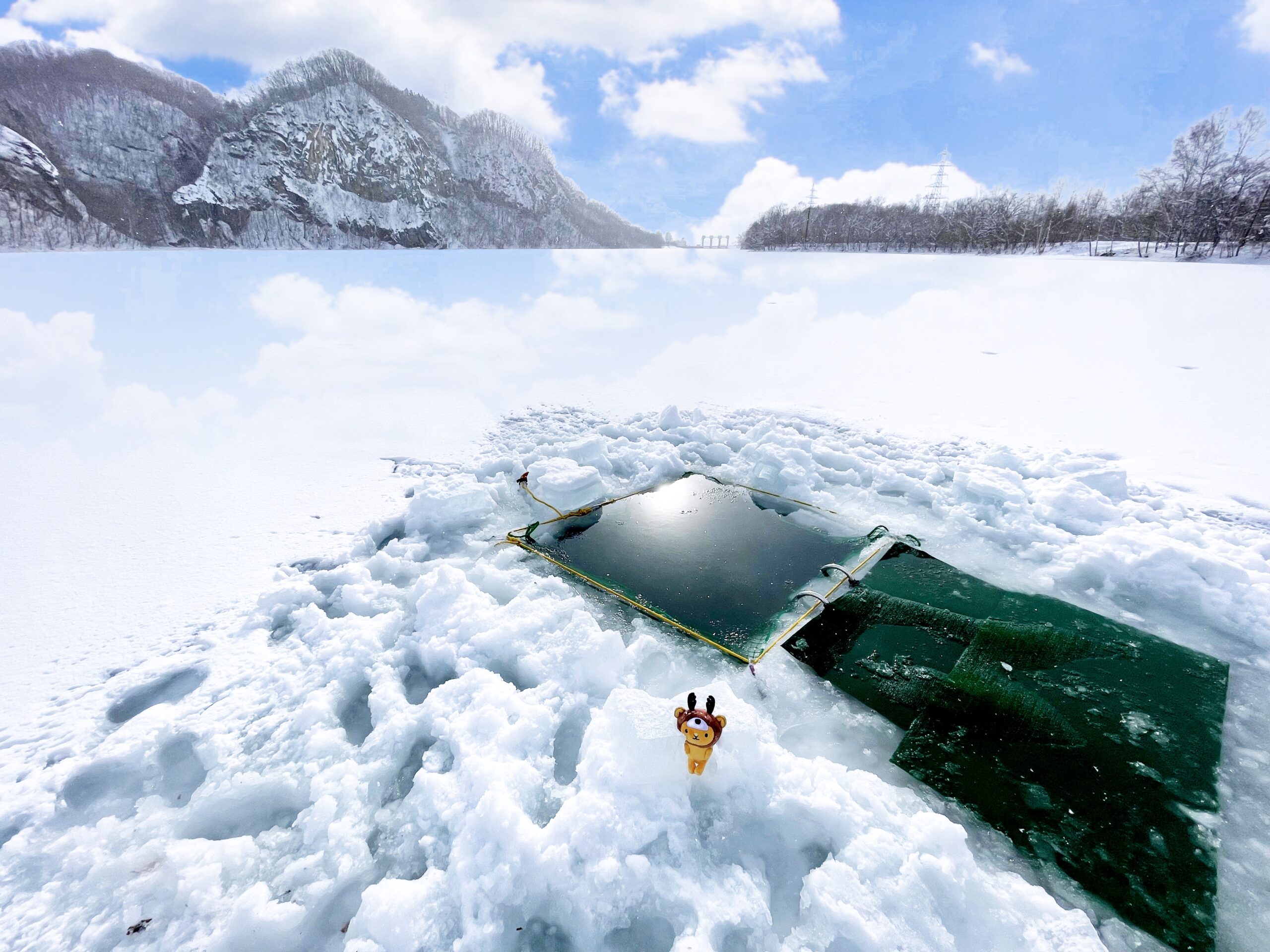 サウナで体を温めた後に、凍った湖や川の氷に穴を開けて水風呂代わりにする