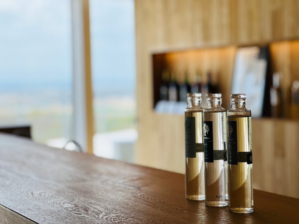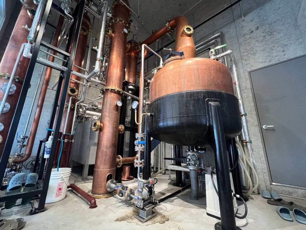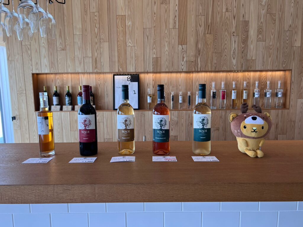 丘をずーっと登って行ったらこんな素敵な建物を発見!!ここ馬追(マオイ)蒸溜所はワインのほかに、2022年からブランデー、フルーツブランデー、ウイスキー、クラフトジンの製造を始めたんだって☆さっそく中に入ってみるのです♪