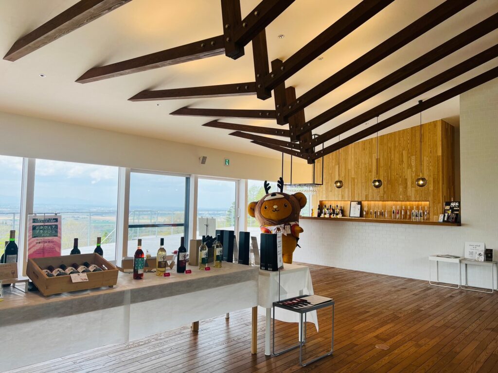 みてみて☆店内はおしゃれでとってもキレイ!!印象的な大きな窓からは長沼の町並みやワイン畑が広がっていたよ♪店内ではワインやジンの販売・試飲、そして見学ツアーもやっているんだよ♪直売所や見学ツアーは土日祝日の営業なので、行くときには公式ウェブサイトで営業日のカレンダーを確認してね☆