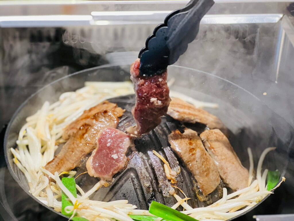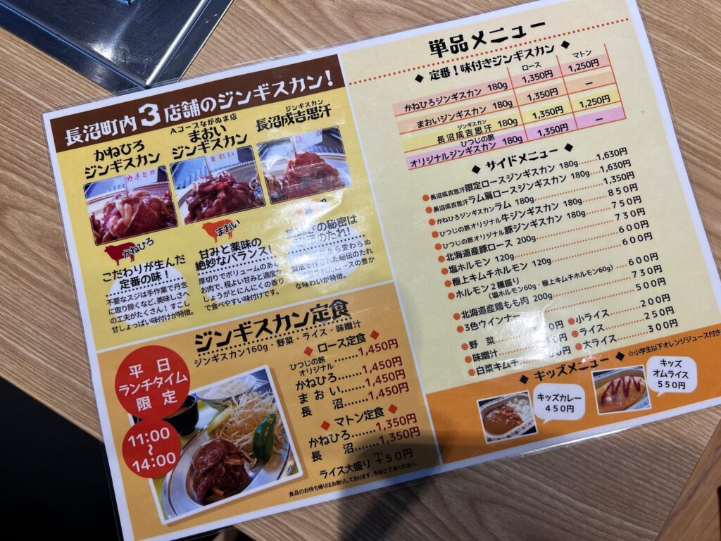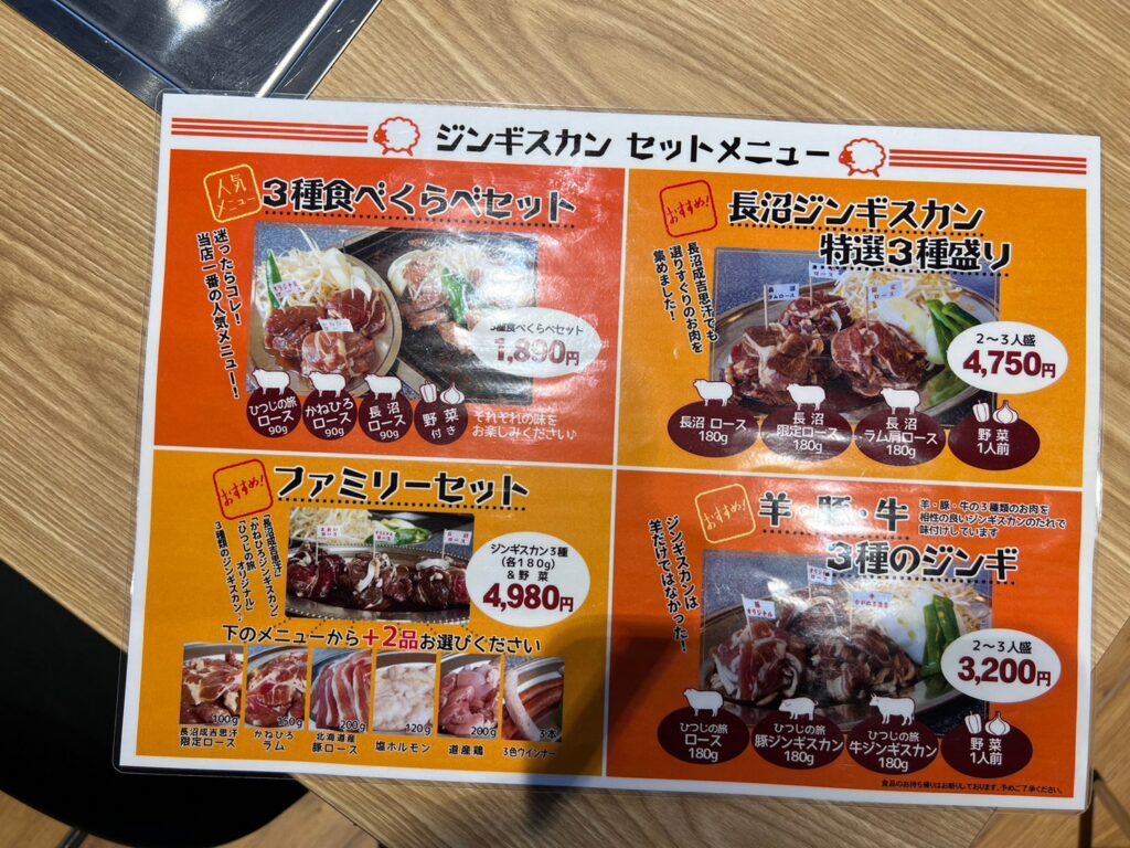 長沼町ってジンギスカンの生産地としてとっても有名♪もちろん町内にもジンギスカン店が多いんだけど、ここ”ながぬま温泉”の敷地内にある「ジンギスカン ひつじの旅」は長沼町内の名店3店舗のジンギスカン全て食べられる”3種食べ比べセット”があるのです♪