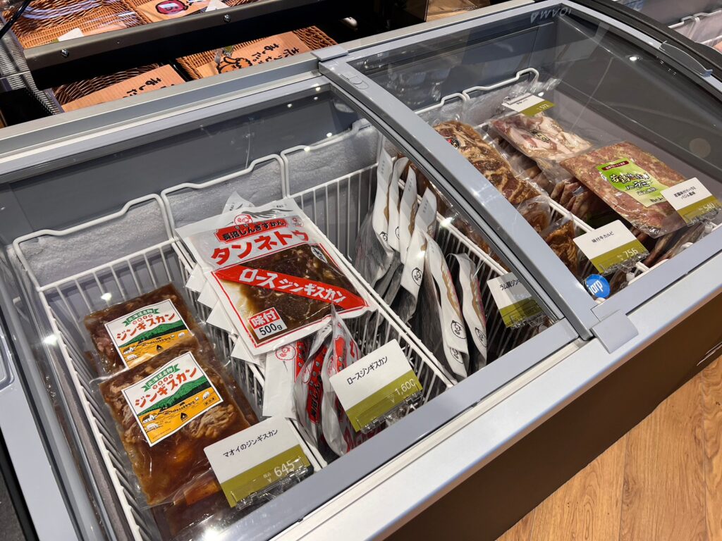 「ジンギスカン ひつじの旅」の下にあるショップでは、ジンギスカンはもちろんお肉やスパイス、ドリンクがいっぱい♪お土産や、近くにあるキャンプ場の利用時にも活躍するね♪