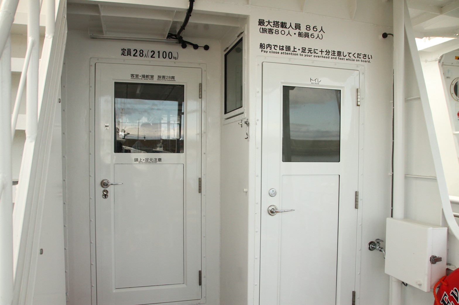 船内はとっても快適~!ベンチもあって、トイレも完備されていたよ~♪