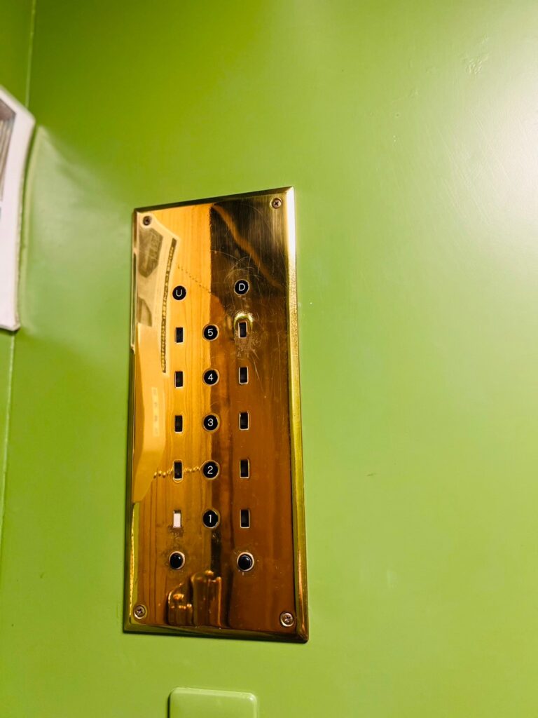 エレベーターの中はこんな感じで、古いながらもキレイでとってもレトロな雰囲気✨