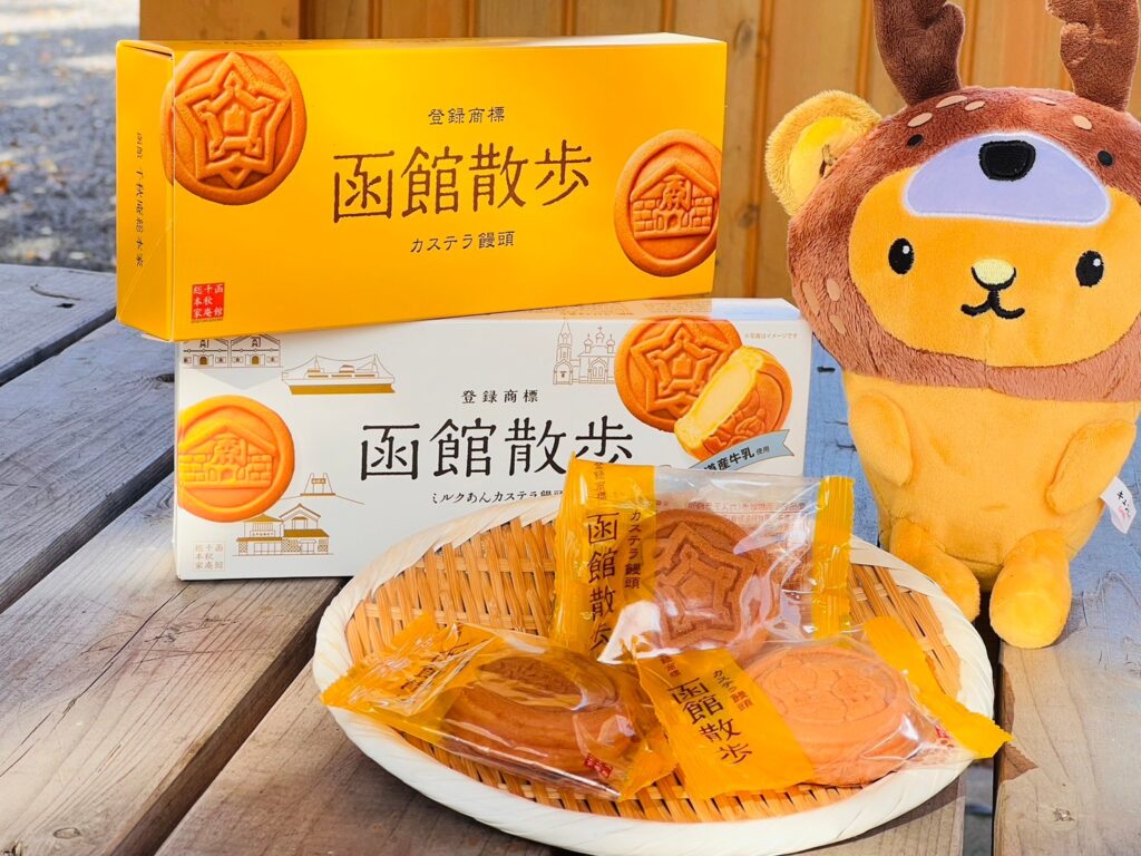 あんこ好きな方へ食べて欲しいと作られたのがこちら「函館散歩」。道産のこだわりの材料を使用したカステラ饅頭で、ミルクやあんこなど味が選べるのも嬉しいね☆函館を代表するお散歩スポットが描かれている表面がとってもかわいいのですっ!!お土産にもピッタリ。「函館散歩」は函館市内のお土産屋さんにも置いてあるので、探してみてね✨