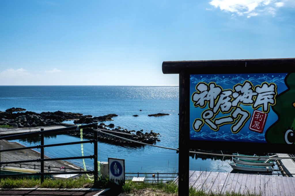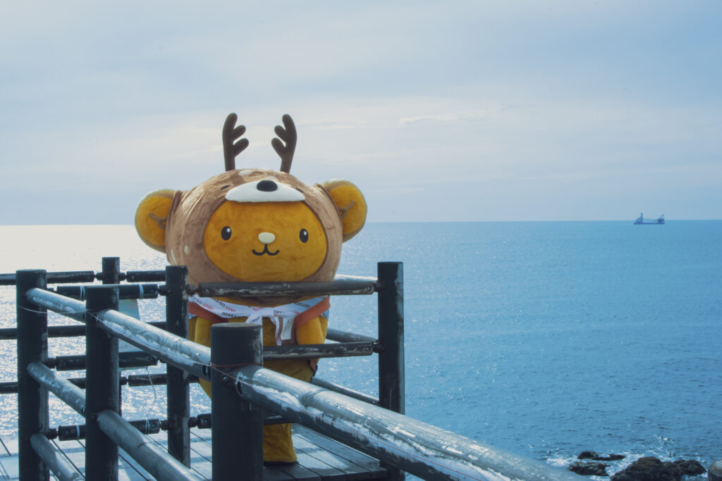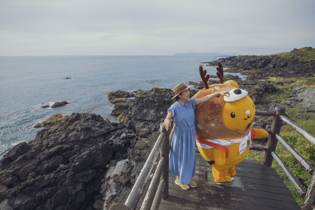 利尻町沓形エリアにあるカムイテラスは、体験施設「神居海岸パーク」の駐車場に隣接している絶景スポット!!海に向かって突き出したデッキから礼文島を一望できるんだよ♪