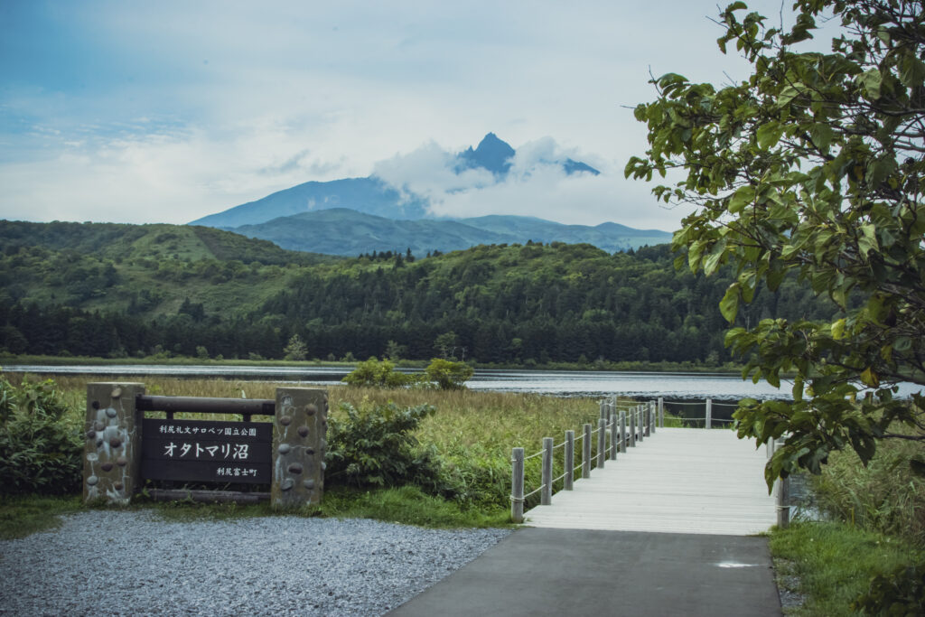 利尻島最大の湖沼「オタトマリ沼」。利尻山がキレイに見えるスポットの一つで、運が良ければ湖面に写る利尻山も見られるかも♪