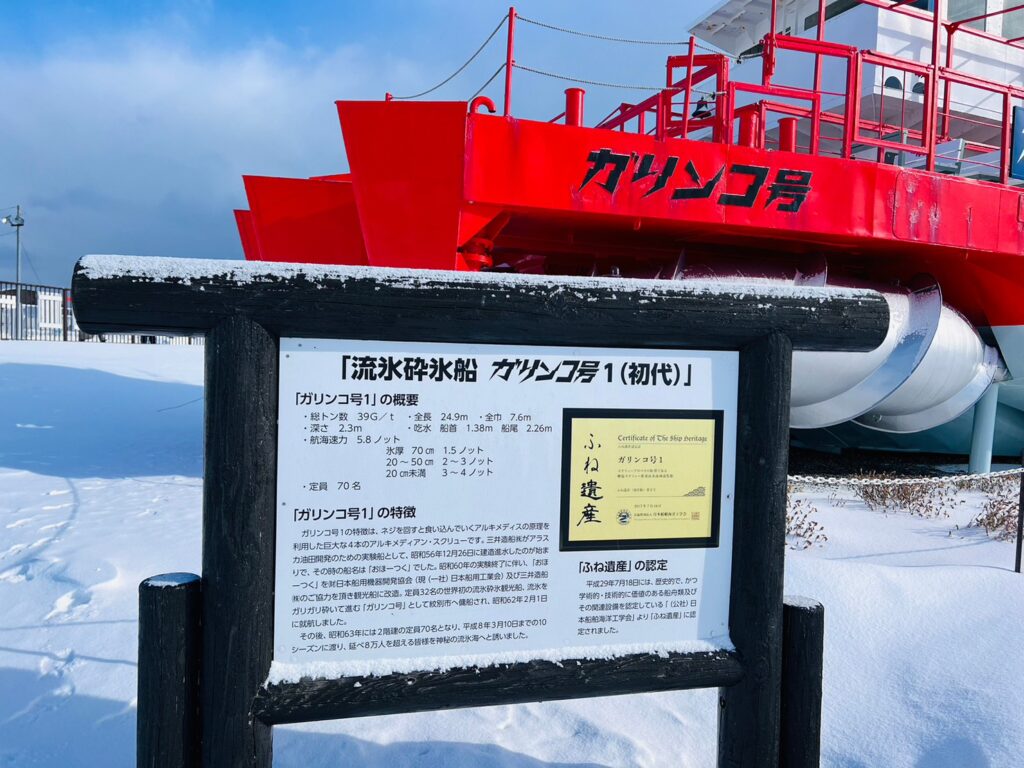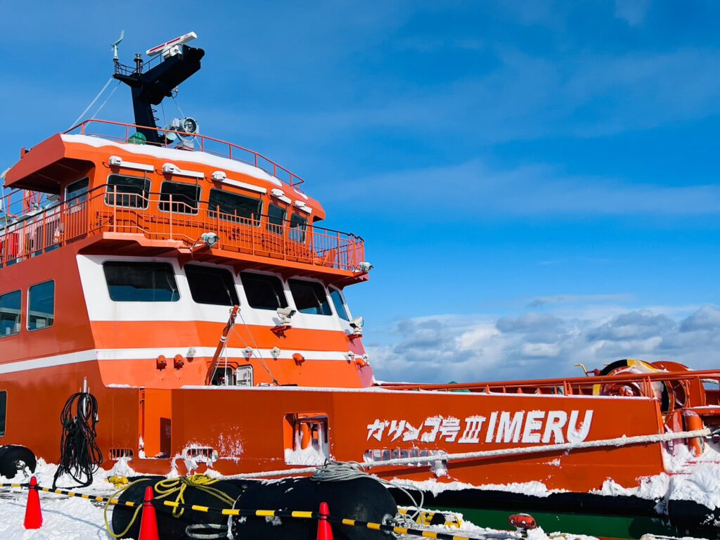 紋別にあるお船は「ガリンコ号」。ガリンコ号は2021年にデビューした新しい船「ガリンコⅢ」と「ガリンコⅡ」の両方が運航されているよ☆今回は2021年にデビューしたⅢに乗船♪