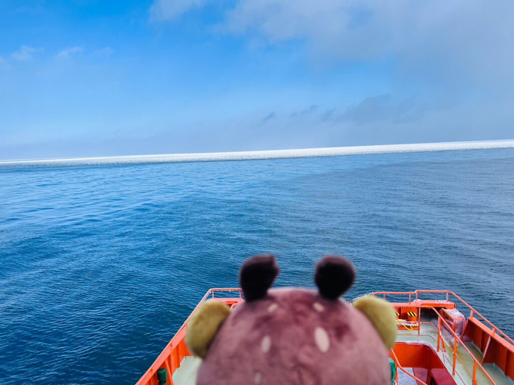 あ、あった!!!流氷だ!!どんどん流氷の白い帯に近づいていくのです♪