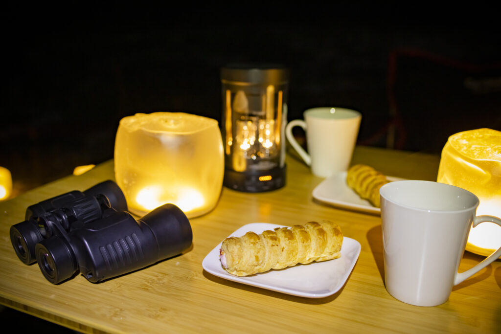 ゆったり星空を見ながらあったかいドリンクとお菓子を食べる、至福の時間を過ごせて幸せ~♪こんな素敵な場所で選べるホットドリンクとお菓子を頂くなんて、、とっても素敵だね~☆