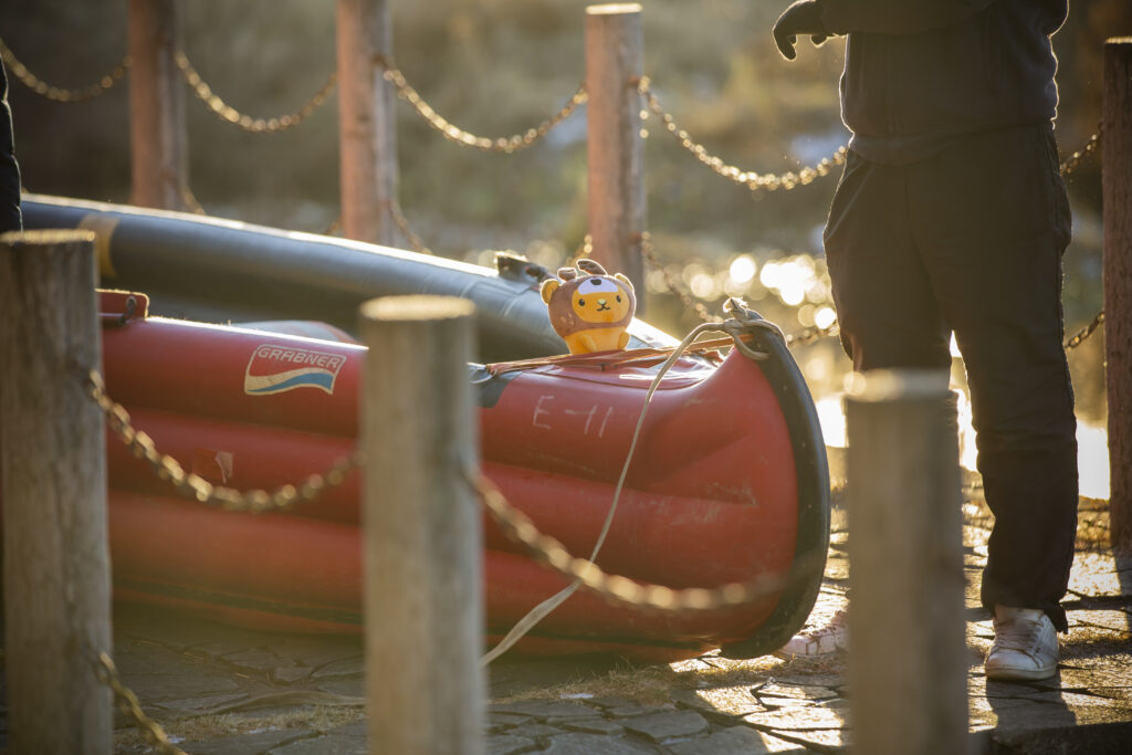 船はおっきくて安定しているよ!キュンちゃんは1番前の特等席に座らせてもらったよ~♪