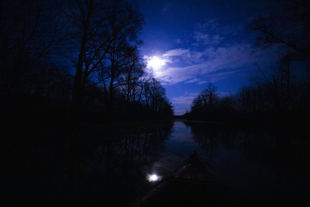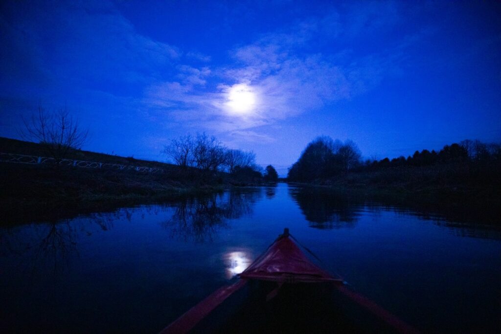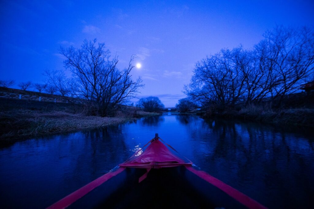 「十勝ナイトリバークルージング」は月の光を頼りに帯廣神社の横にある自然豊かな帯広川をゆったり進むナイトクルージング。日本でも数少ない夜に楽しむカヌーツアーを体験!