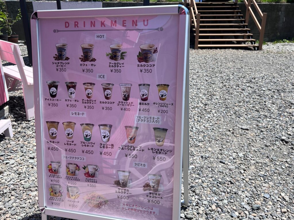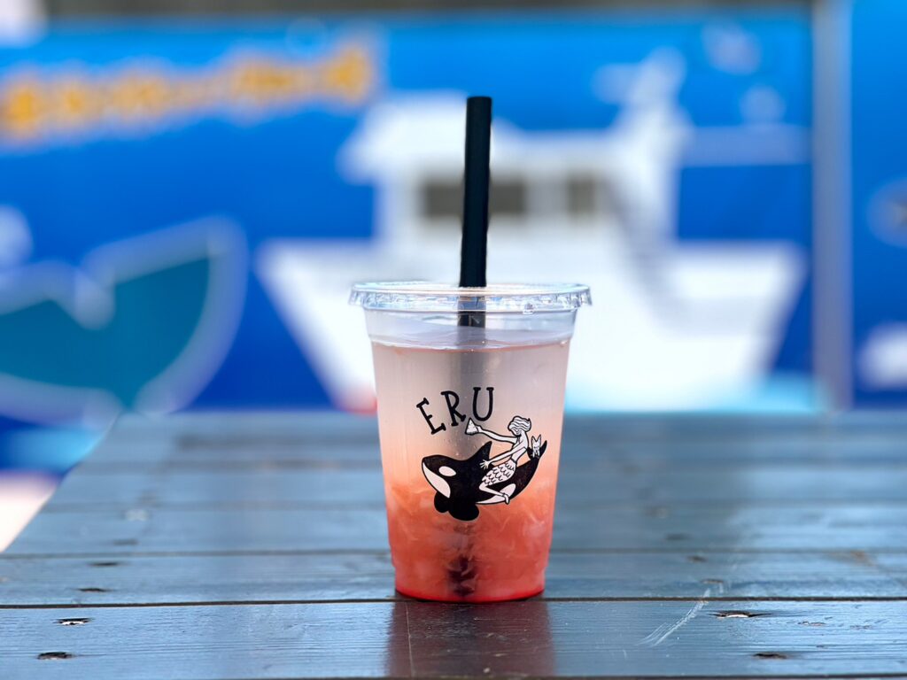 シャチのベビーカステラや、ドリンクは豊富にレモネード、フルーツレモネード、タピオカ、ブレンドコーヒーなど沢山の可愛い美味しそうなドリンクたち✨