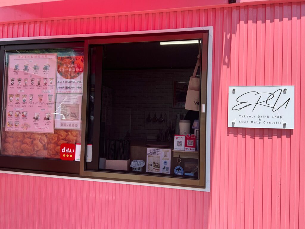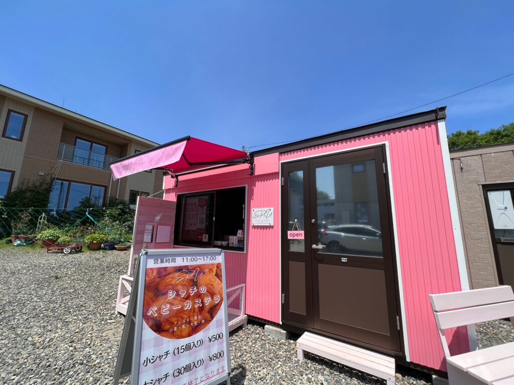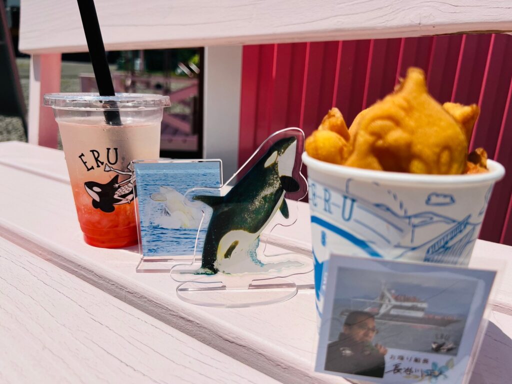 羅臼町の道の駅「知床らうす」の裏手、知床ネイチャークルーズを奥にピンク色の可愛らしいコンテナハウスを発見!!”シャチ”をモチーフにしたスイーツなどを販売している今話題のテイクアウトショップERUがあったので行ってきたよ♪