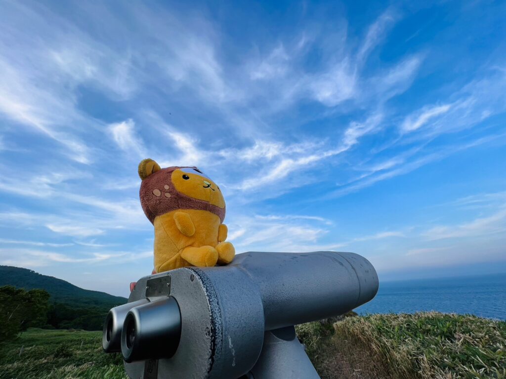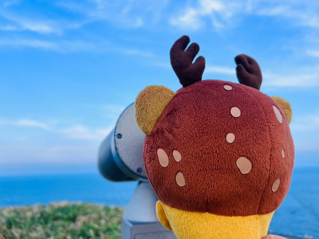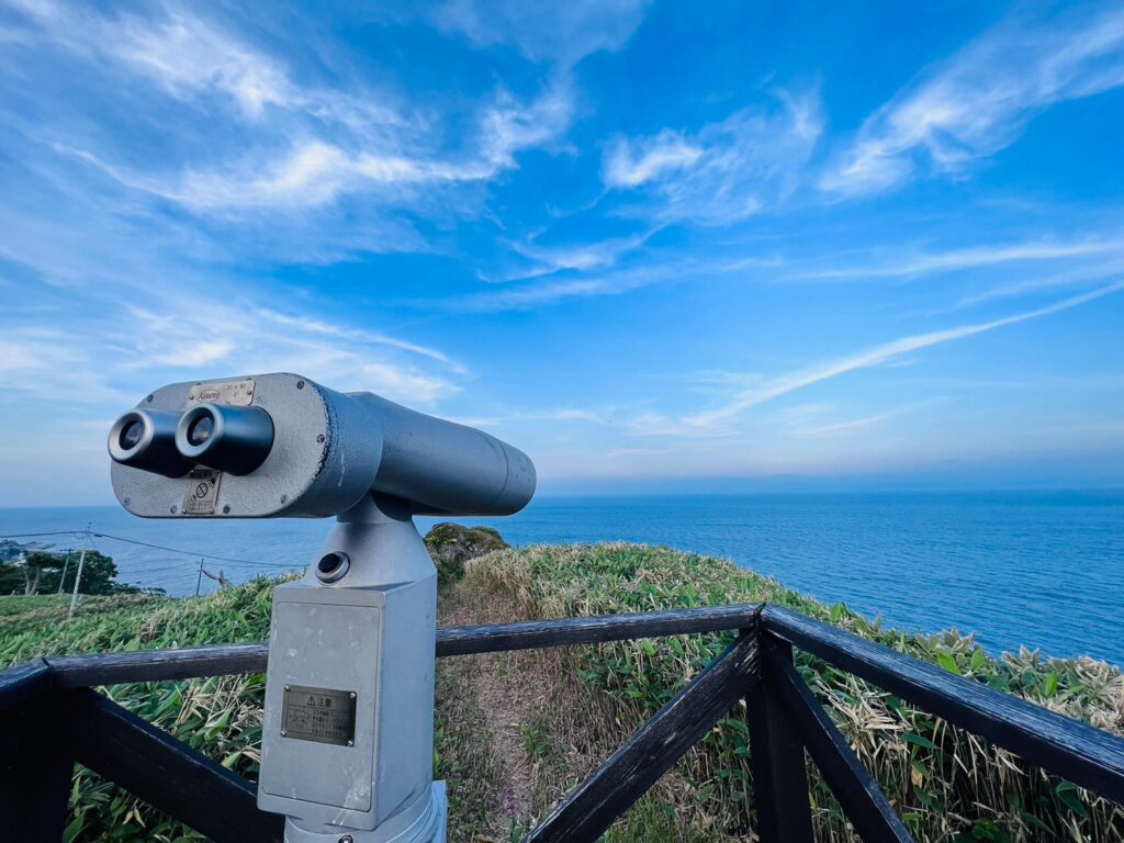 運が良ければ陸地からもクジラの潮吹きを視認することができるんだって✨(双眼鏡にて)