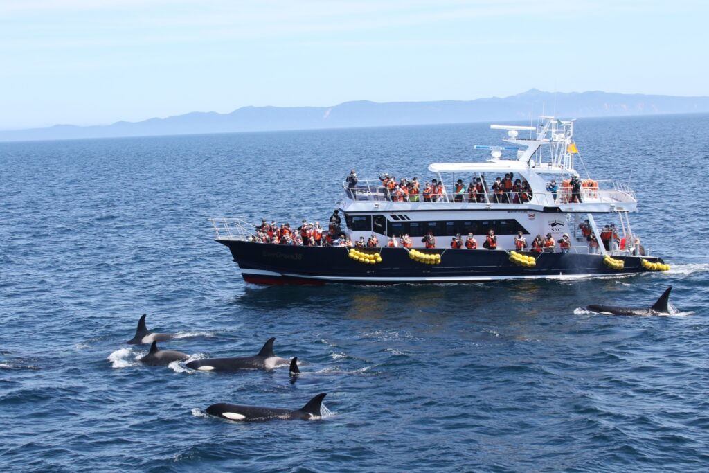 こんなにシャチが近くで見れるなんて・・・!まさに世界トップクラスのシャチとの遭遇率を誇るという知床羅臼ならではなのです!キュンちゃんが乗船予定の前日はまさにこのような沢山のシャチが見れたんだって✨羨ましい~!