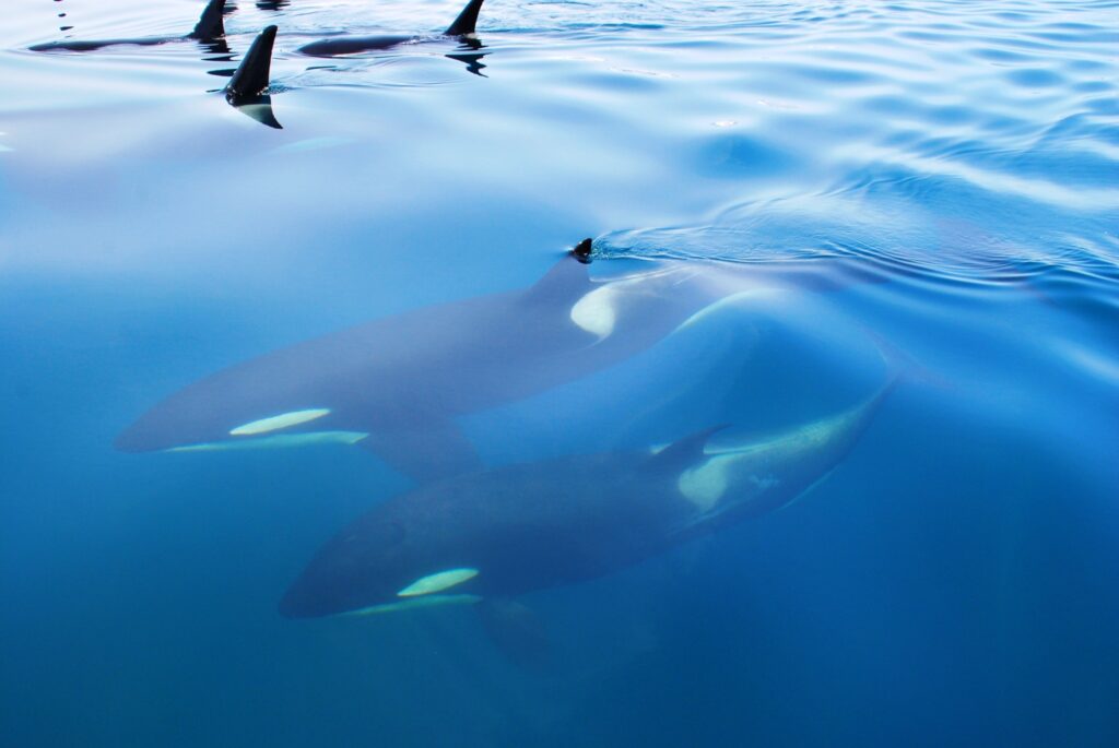 裏面の2頭のうち片方のシャチは白いシャチ。