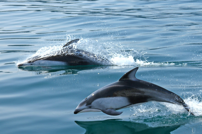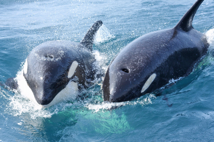 知床半島の東側、羅臼の沖合では、毎年4月下旬~10月中旬の期間、イルカやクジラ、そして、海の王者・シャチまで見ることができるのです!狭い海域でこんなにもたくさんの種類のイルカやクジラに遭遇できるのは、ここ羅臼だけだって!