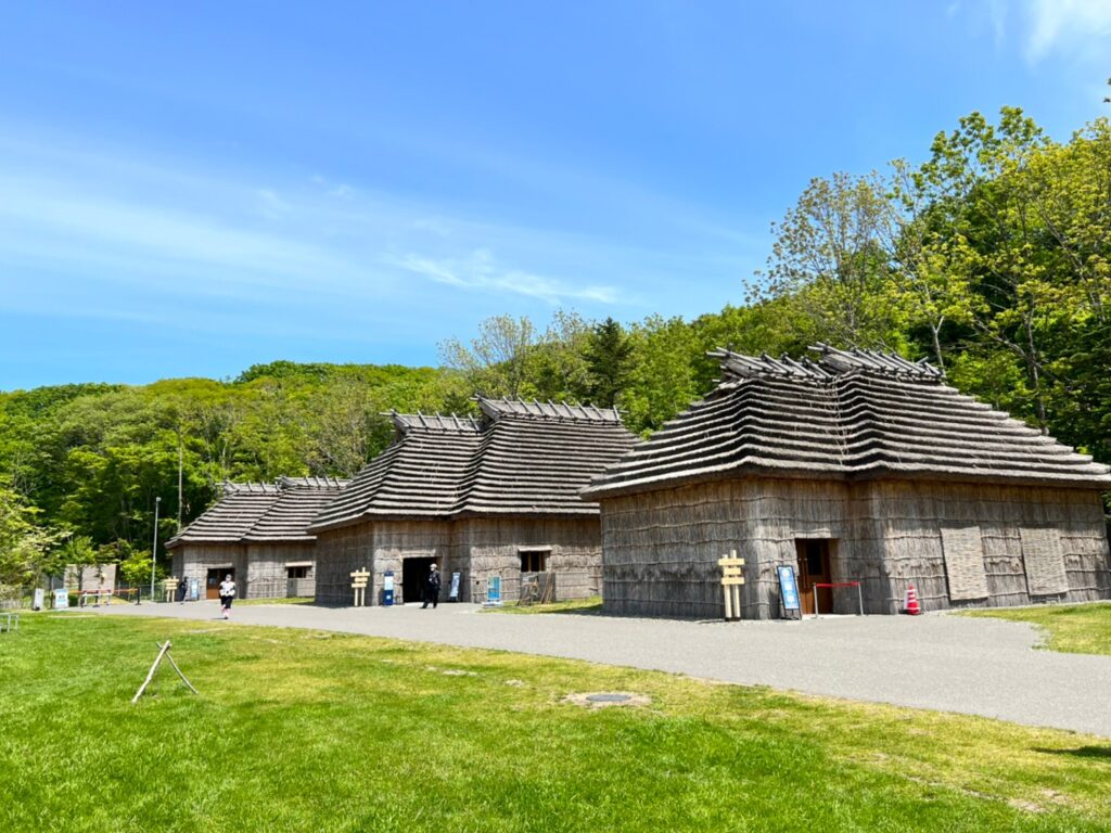ウポポイはポロト湖に面していて、広くて開放的な空間なのです♪こちらは「伝統的コタン」。アイヌ語で”チセ”と呼ばれる当時のおウチを再現した場所だよ~!中に入ってみると当時の生活を体験できたり、民族衣装を試着して写真も撮れるんですっ☆