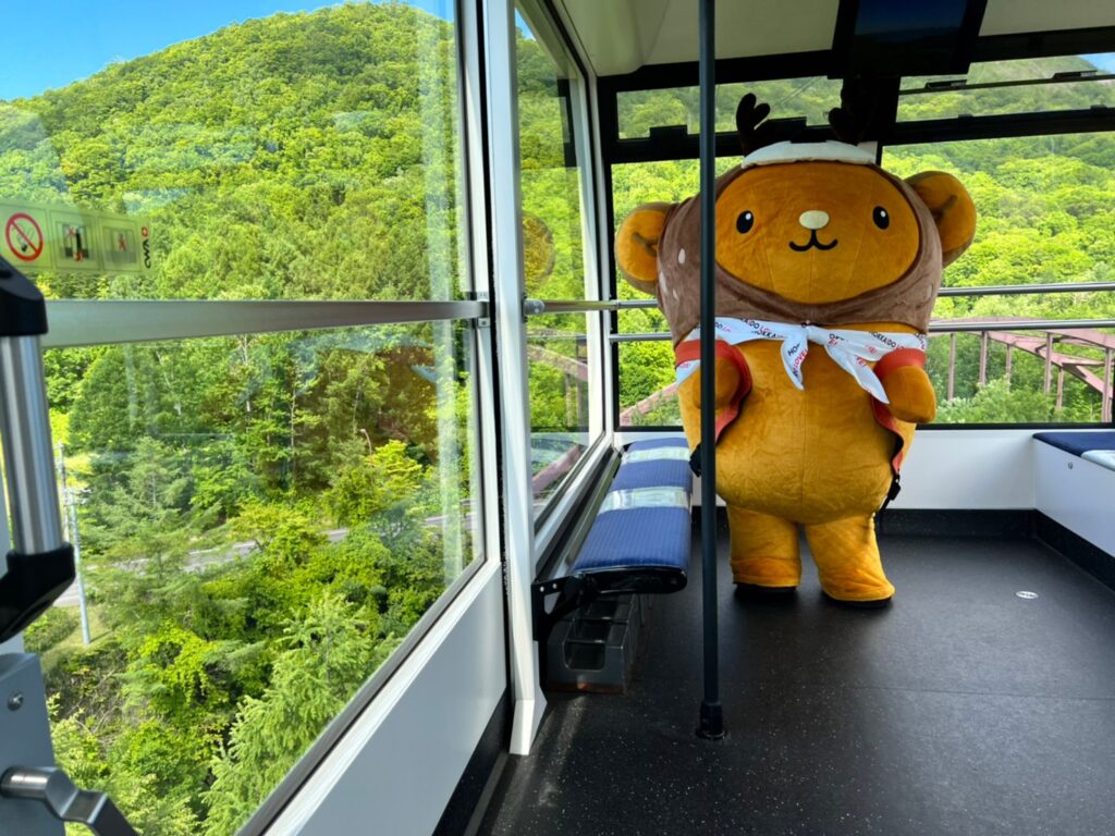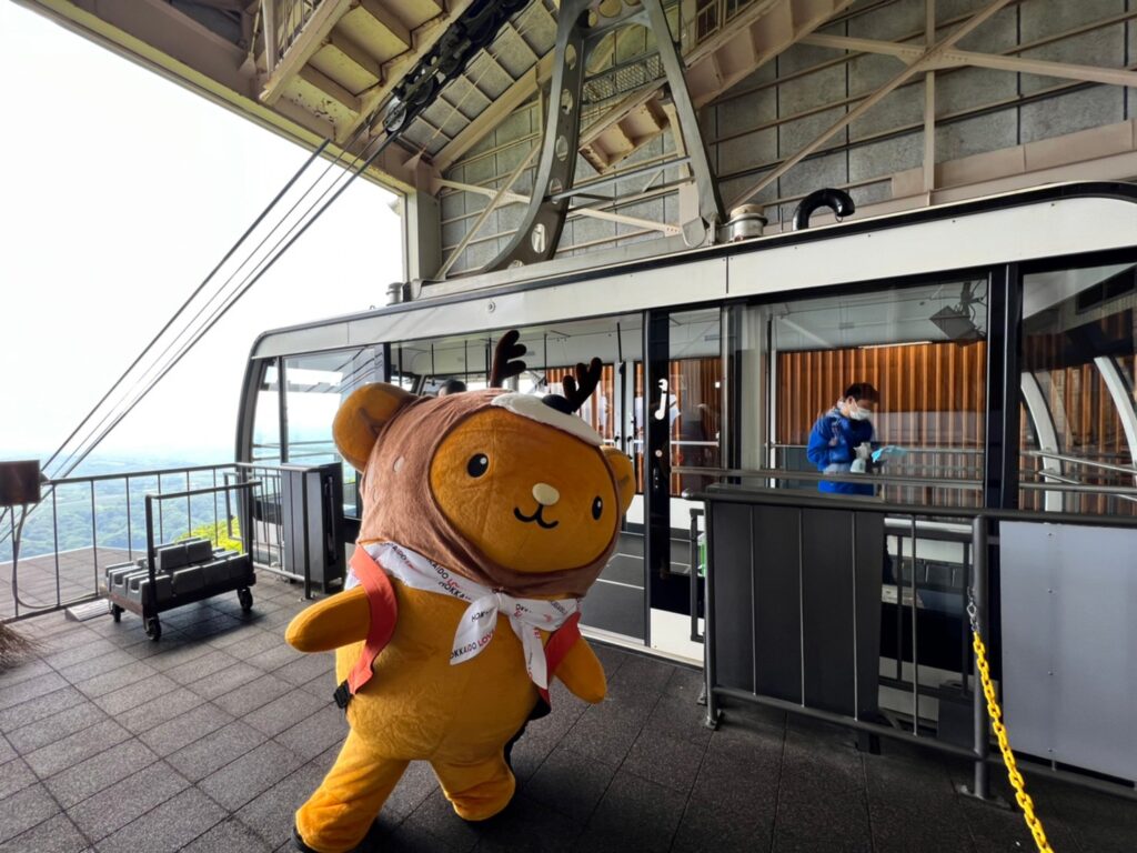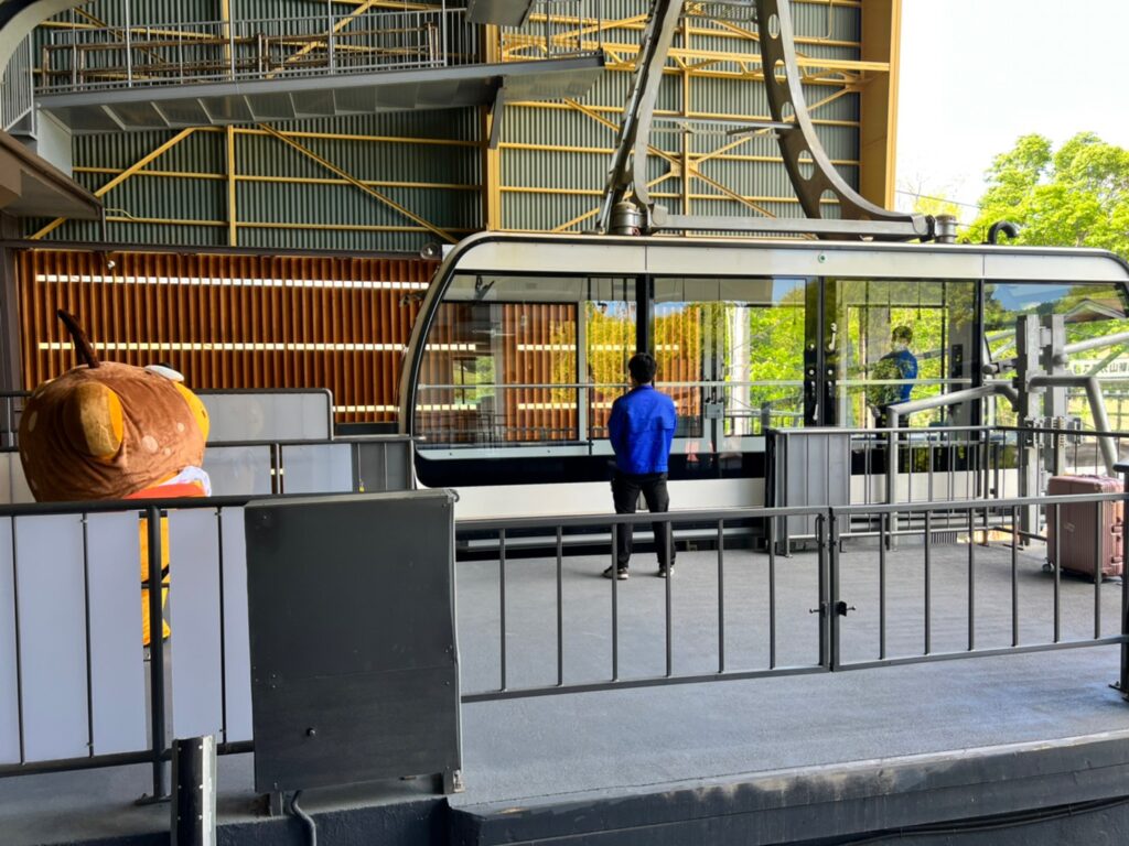 きたきたー☆こちらのロープウェイは2020年春にリニューアル、96人乗りで窓もとっても大きく360°景色を見渡せるよ~☆