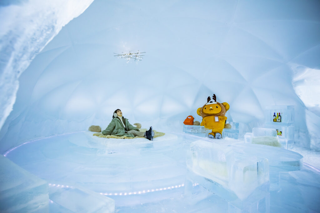 アイスビレッジといえば、もう1つの目玉がすべてが氷で造られた「氷のホテル」!なんと、1日1組限定で実際に宿泊できるんだよ~!ソファーやテーブルも全部氷!今年度(2022年~23年)は新たに「氷のミニバー」が登場したんだって☆