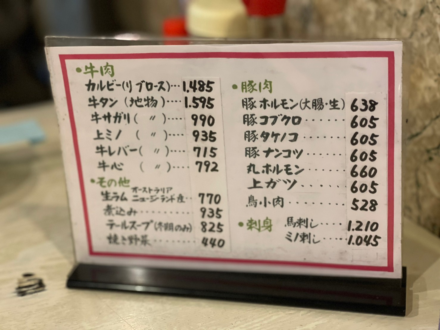たくさんあるオススメから今日は西野さんが迷いに迷って「カルビ・豚タケノコ・ミノ刺し」の3品を厳選注文!