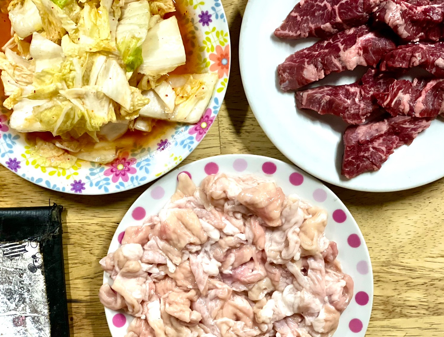 龍巳さんで厳選注文した3品は「豚ホルモン・キムチ・サガリ」!