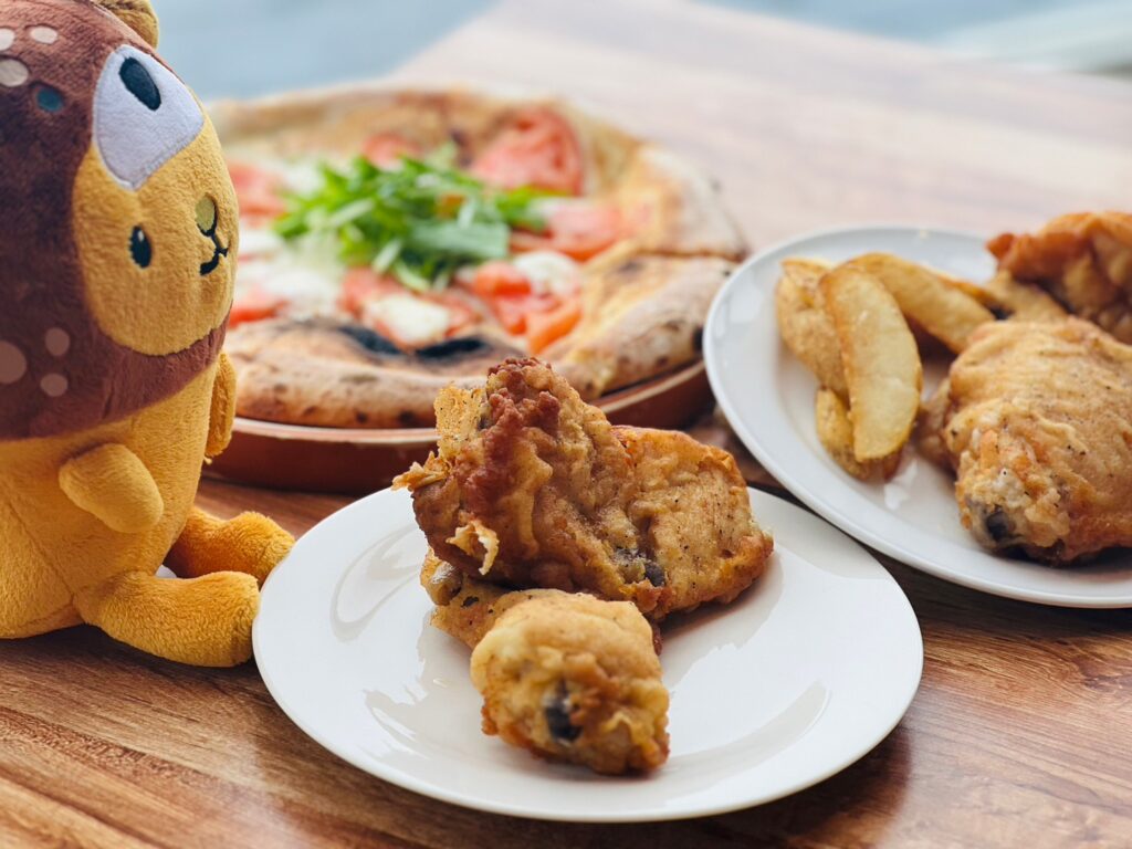 ハーベスター八雲は国産ハーブ鶏の”フライドチキン”や”パスタ”や”ピザ”が大人気の空と海のレストランなのです~✨